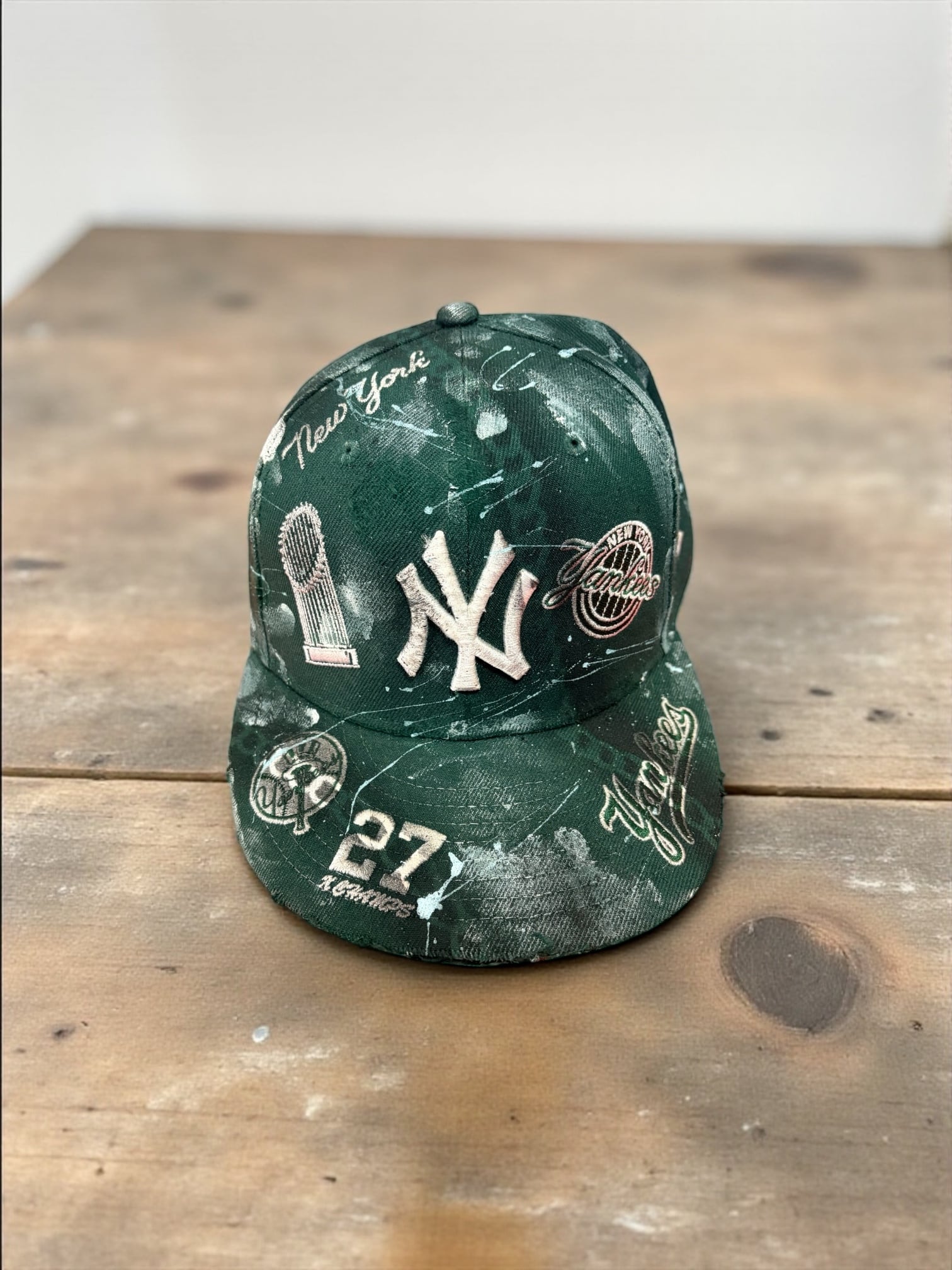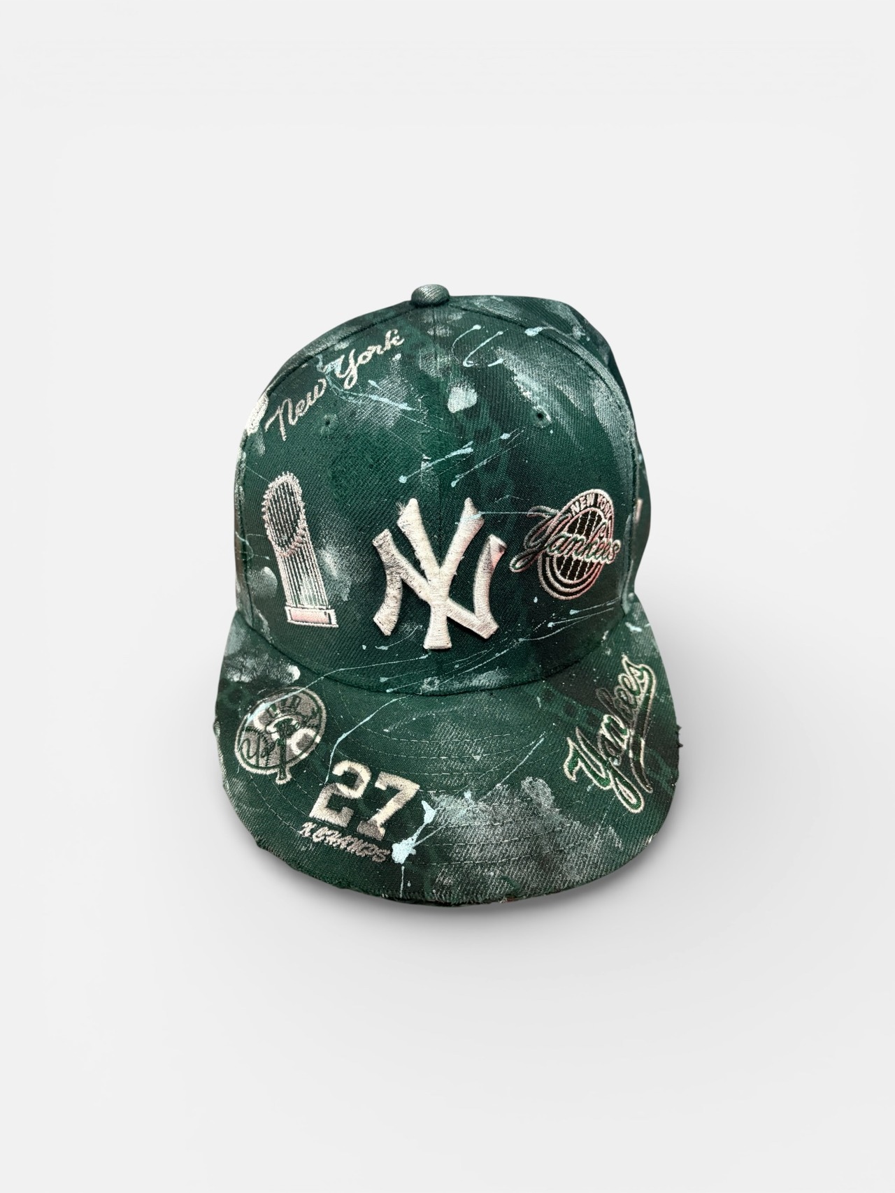 古着のキャップをベースにアーティスティックなリペイントキャップを作成しました。
