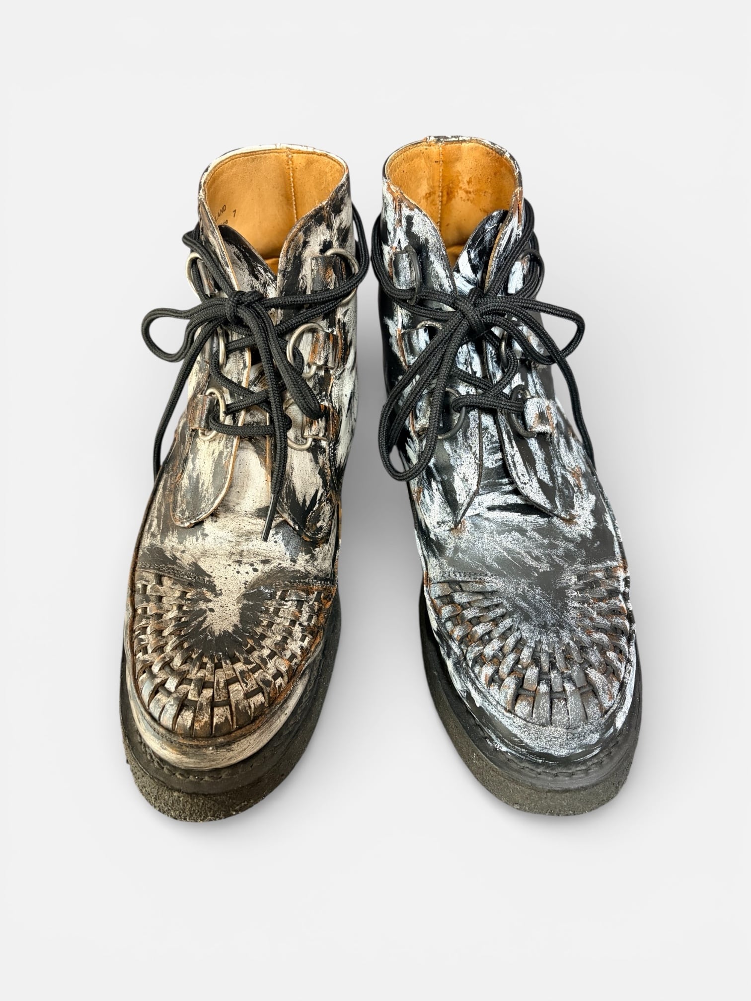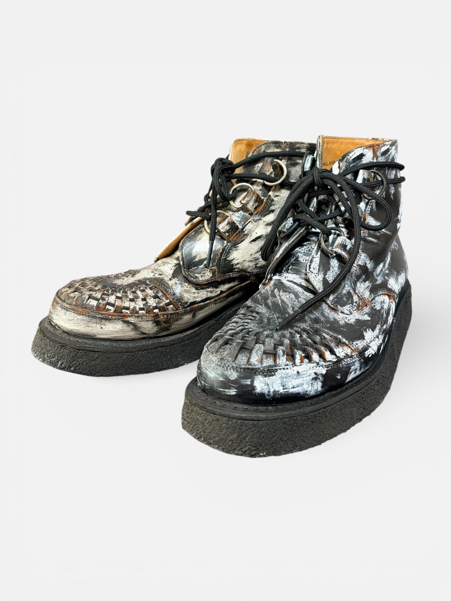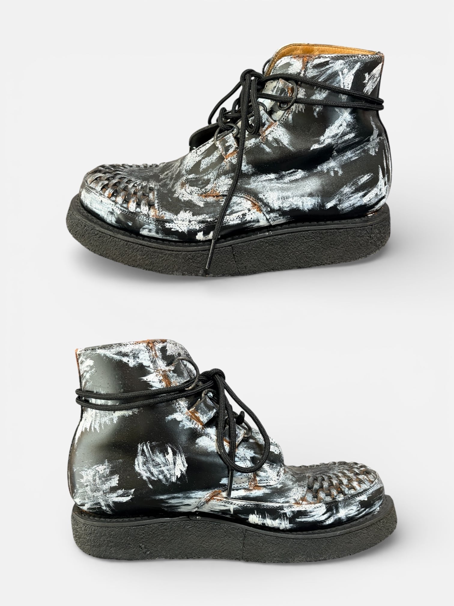 George Coxの定番ハイカットラバーソールをリペイントした作品。