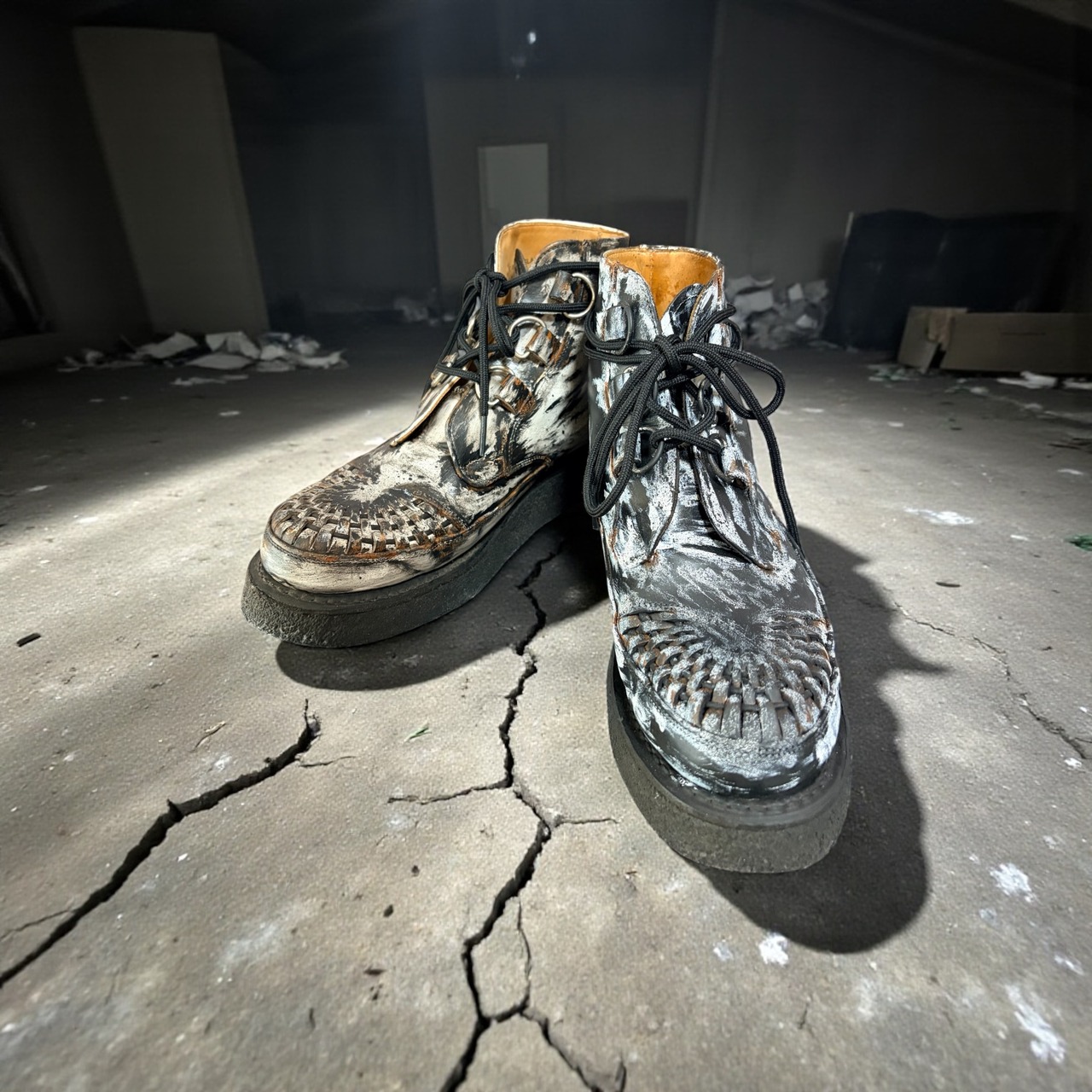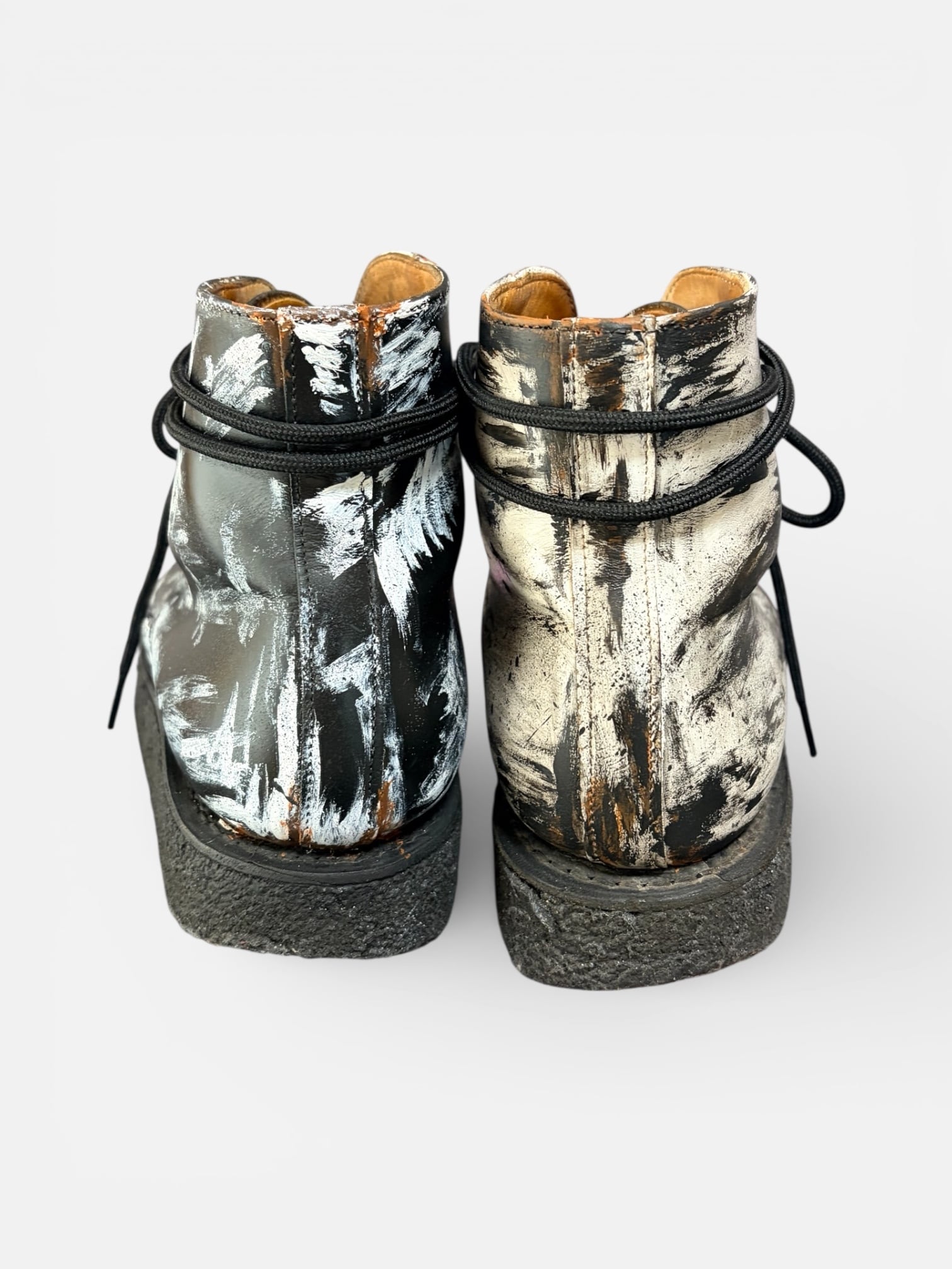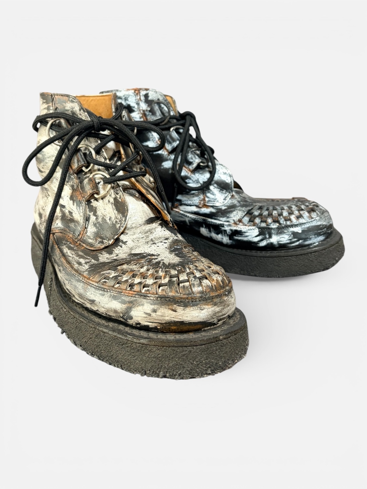 George Coxの定番ハイカットラバーソールをリペイントした作品。
